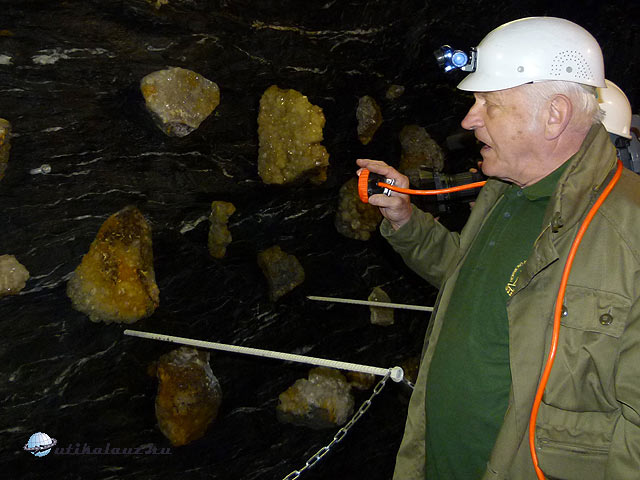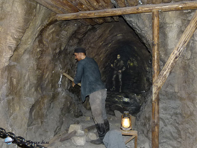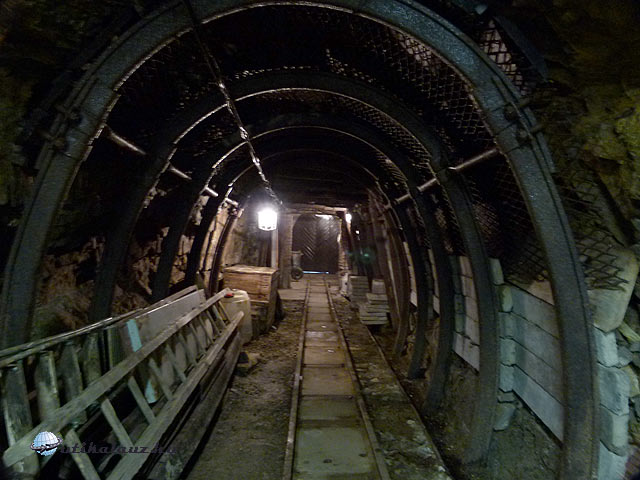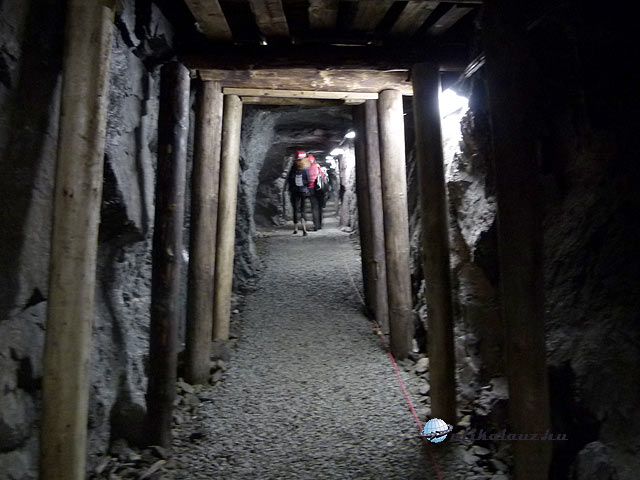 A bányában 7 Celsius fokos az állandó hőmérséklet és 98 százalékos a relatív páratartalom. A mintegy 40 perces utunk hol szépen kialakított alagutakon, hol csak éppen kicsit kibővített sziklarepedéseken vezetett át. Vezetőnk a kelták idejéig vezette vissza a helyi bányászkodás történetét. Az elődök először ezüstöt keresve kezdték kialakítani a járatokat. A bejárt tárnákban afféle tanösvényként be is mutatták az itt bányászott fémeket, más kőzeteket és a különböző korokban itt dolgozott bányászok eszközeit, védőfelszereléseit a csodatevő szobroktól a légzőkészülékekig. Már útközben is, több érdekes dolgot láthatunk, de egy nagyobb “teremben” még külön kiállításon is összegyűjtötték azokat a kőzeteket, amiket az elmúlt évszázadokban itt bányásztak.