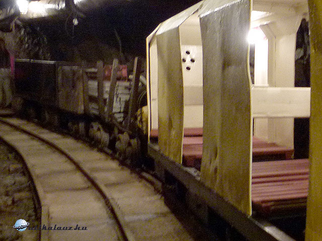 Kicsit arrébb ismét visszatértünk a folyó másik partjára egy gyaloghídon, ami egyenesen Hornicky Skanzenbe. A 2005 óta működő bányászati múzeum szabadtéri részén csilléket, még ma is működő apró mozdonyokat, hatalmas levegőtisztító ventillátorokat és más eszközöket láthattunk. Az érdekesebb persze a föld alatti rész volt, amit a 36 kilométer hosszú tárnarendszer egy részében alakítottak ki.