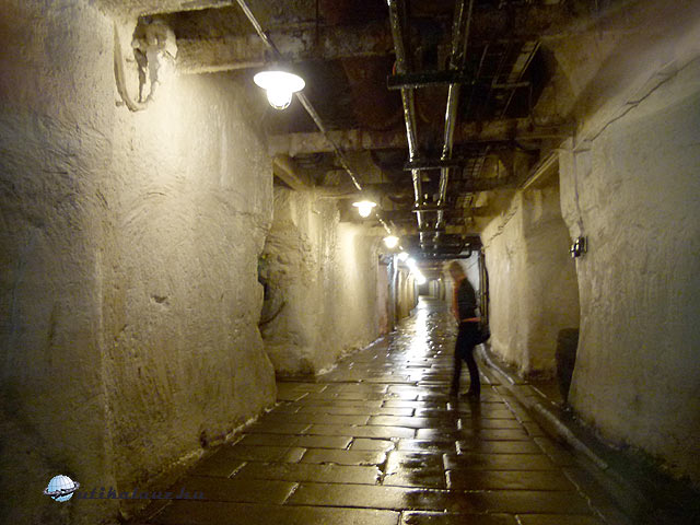 Hiába azonban a sejtelmes fények, a gabona között járó szél susogását utánozó hangok, a malátából, komlóból kitett minták, a vízzel kapcsolatos hókuszpókuszok, nekem az igazi élményt az a pincerendszer jelentette, amit 1839-ben építettek a félkész és kész termékek tárolására. A gyár alatti területet teljesen behálózó járatok teljes hossza 9 kilométer, a lenti hőmérséklet állandóan 5 Celsius fokos, amit a folyamatosan csörgedező víz segítségével alakítottak ki. Azért kellett ilyen nagy hely, mert a régi technológiával itt kellett sokáig tárolni a készülő italt. Ma már csak a turistáknak szánt sörök vannak itt. Igaz, az sem kevés.