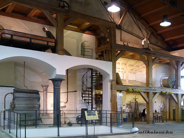 A látógatóközpont aulájában felépített makett a gyártási folyamatot és a munkások egykori életét mutatja be