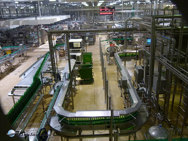 Előbb az új palackozó sorokat néztük meg, amik óránként 60 ezer üveg sört tudnak betölteni. Láttuk a hatalmas, szinte medence méretű rézüstöket is, amikben korábban készült a világhíres nedű. A több szinten kialakított mai üstök hasonló formájúak, de ezekben már számítógéppel irányított folyamatos technológiával állítják elő a különböző söröket 2004 óta.
