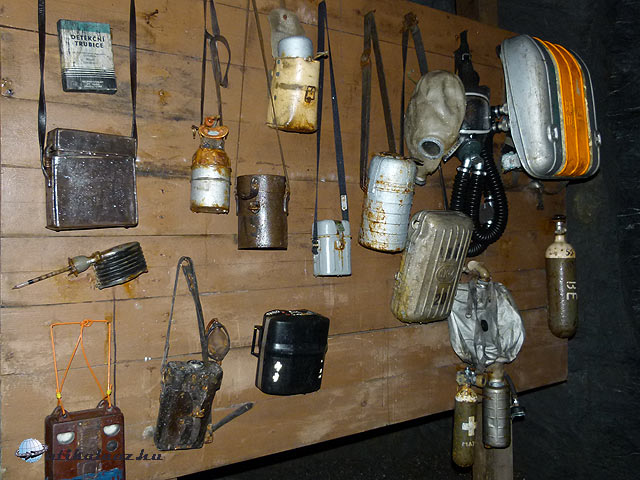 Légzőkészülékek és más eszközök kiállítása a föld alatt