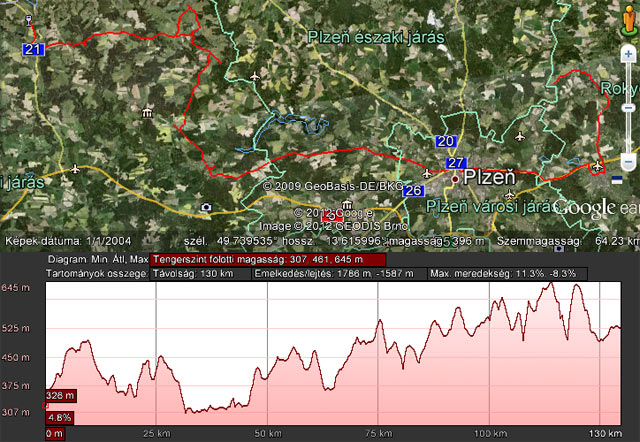 A kirándulásunk szinttérképe a Google-Earth segítségével