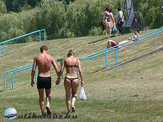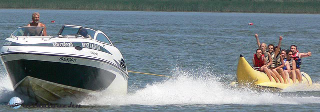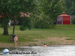 A szabadstrandnak nevezett partszakaszon itt sem ingyenes a fürdés – ahogy balatoni észjárással gondolnánk -, a felnőttektől 450 forintot, a gyerekektől, diákoktól egy százassal kevesebbet kérnek egy napra belépődíjként. Mivel a főszezon még nem kezdődött el, fürdőzők kevesen voltak, de a zárt pályás vízisí, a motorcsónakkal vontatott banán és a csúszda így is működött, nyitva voltak a kölcsönzők és a büfék is.