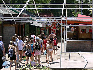 Felmentünk a néhány éve kiépített 1500 méteres vízisétány kilátótornyába. Mi is ott kötöttünk ki, ahol a csoportokat szállító nagyobb hajó. A kiírás szerint egy teljes árú jegy 690 forintba kerül hajózással együtt, a kedvezményes – gondolom gyerekeknek – 460 forint. Ha valaki önállóan jön – mondjuk csónakkal -, akkor 500 és 300 forint a tarifa.