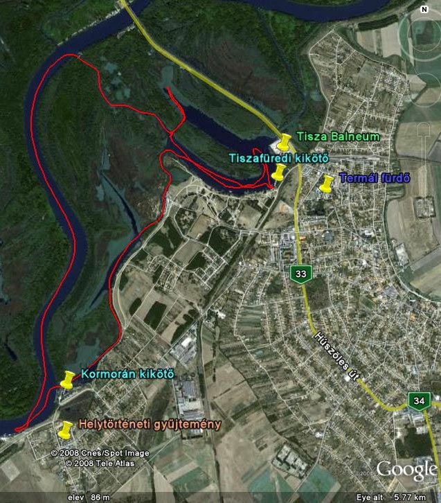 A tiszafüredi strand után jobbra fordulva a holtágon elmentünk az Élő-Tiszáig, majd azon balra, a sodrást követve a tiszaörvényi Kormorán kikötőig, ahonnan a VIII. számú öblítőcsatornán és az Örvényi-morotván át visszatértünk a kikötőbe.