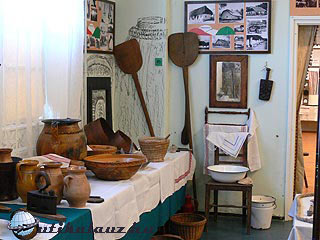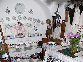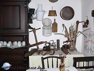 A nem tervezett kerülő után megnéztük a tájházat. A környék stílusát őrző épület tele van 19. századi, 20. század eleji falusi használati tárgyakkal, ruhákkal, berendezésekkel, fotókkal. Úgy adták össze őket a helybeliek.