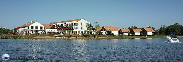 A hotel közvetlenül a város előtt van, az út jobboldalán, a kanyargós Füredi-Holt-Tisza és a X. számú öblítőcsatorna közé benyúló félszigeten. Először elmentünk mellette, annyira nem tűnt fel. Nagy épületre számítottam, amilyenre a balatoni négycsillagos wellness hoteleket építik, de ennek a háromszintes főépülete és az apartmanok egy részének helyet adó külön kis kilenc ház szolidan belesimul a környezetbe.