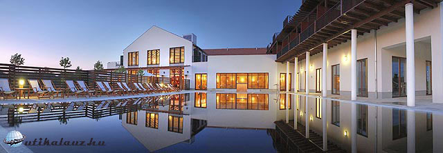 Egy kis ejtőzés után felfedeztük a hotel wellness részlegét. A félsziget víz felőli oldalán, a főépület két szárnya fogja közre a mintegy 20-25 méter hosszú külső medencét, amelyben 25 fokra hűtve merülhetünk el a szálloda saját, 44 fokos termálkútjából származó vízben. A hossz és a hőmérséklet kiváló az úszáshoz, de akár a pihentető lubickoláshoz is. A medence nyitott oldalán ernyőkkel, ágyakkal napozó, beszélgető, koktélozó helyet alakítottak ki.