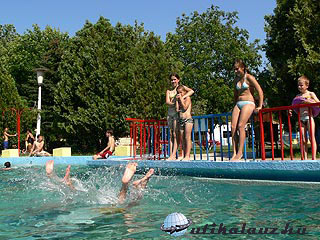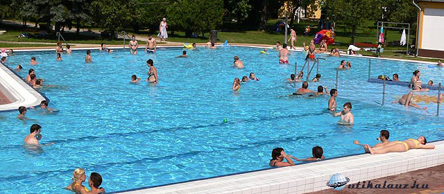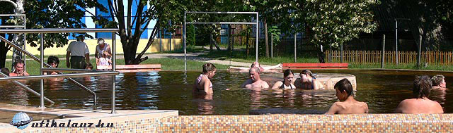 Megnéztem a tavasztól őszig működő városi termálfürdőt is. A fedett termálmedence 39 fokos alkáli hidrogén karbonátos vizét elsősorban a mozgásszervi betegségek kezelésére javallják. A kinti medencék közül a kisebb, éppen 36 fokos vízét is inkább a gyógyulni, vagy éppen beszélgetni akaróknak, a 22 fokos nagyot az úszóknak, egy másik kicsit melegebbet a lubickolóknak és a 30 fokos pancsolót a legkisebb gyerekeknek ajánlják. (A felnőtt belépő ide 900, a nyugdíjas és diák 640 forintba kerül.)