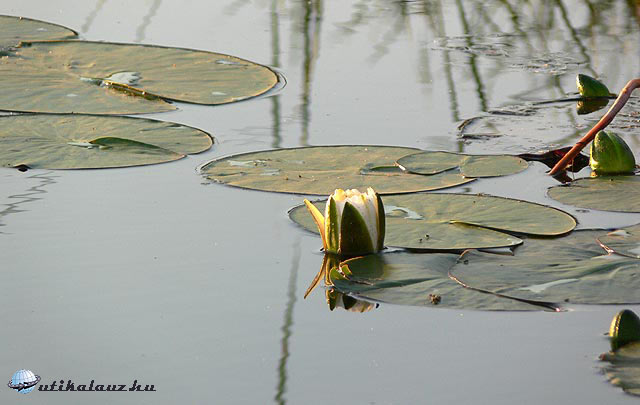 Többször nagyobb tündérrózsa mezők mellett haladtunk el. Némelyik már nyitotta ki a virágját, de László szerint majd visszafelé lesznek az igaziak, ha még egy kis napsütés éri őket. Egyébként májustól szeptemberig minden reggel kinyílnak a szirmaik, este meg összezárulnak.