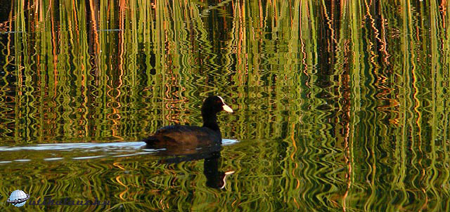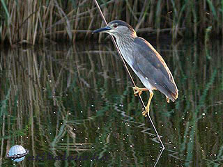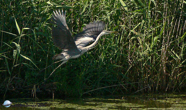 Nem messze tőlünk egy nagyobb testű madár ült a vízinövények tetején.