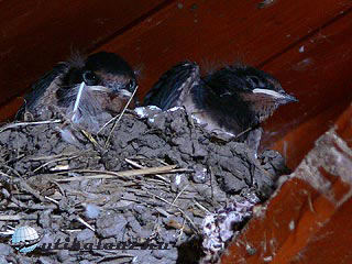 Mielőtt elindultunk volna vissza, nagy hangzavar tört ki a fejünk felett. A házikó gerendájára ragasztva egy fecskefészket fedeztük fel.