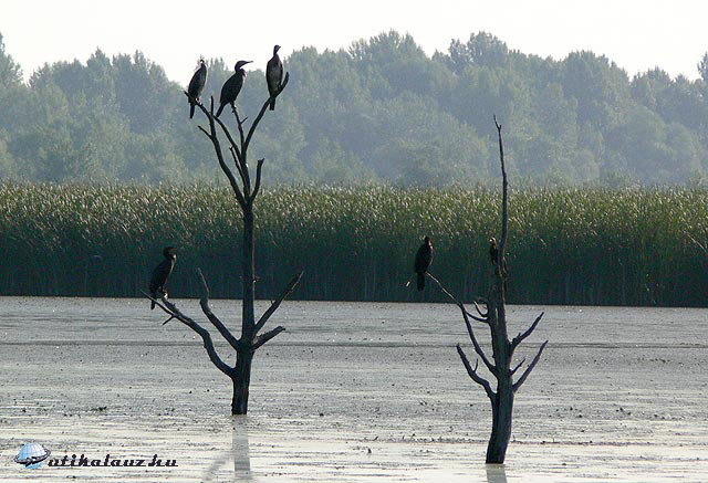 Nem sokkal később a kormoránok birodalmába értünk. Az eddigi élettől duzzadó vidék után halott világnak tűnt a tónak ez a része. A kormoránok, vagy másik nevükön kárókatonák egy egykori gyümölcsöskert élettelen szilva és barackfáinak csonkjain gubbasztottak. Régen, amíg csak a nevüket ismertem, kedves, szép állatnak képzeltem őket. Ma már nem szívesen barátkoznék velük.