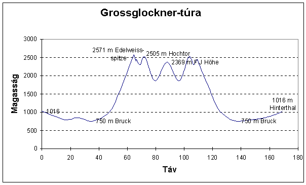 Aug.7. | Hinterthal – Bruck – Grossglocknerút / Edelweiss-spitze – Hochtor – Franz Josephs Höhe – Hochtor – Bruck – Hinterthal | 169,29 | 8:22:41 | 20,1 | 3751 m |