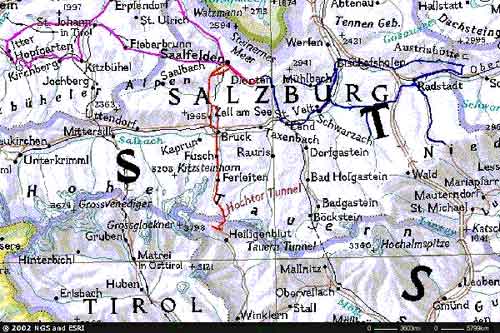 Maria Alm települést megpillantva azonnal fotózni álltam meg: a falu mögötti 2500-2600 m-es hegysor előtt 2-300 m vastag fehér felhőréteg úszott, a hegyek mögött az égbolt kék hátterül szolgált. Saalfeldentől eddig még ismeretlen úton – egyébként a 311-es főúton – kerekeztem dél felé: az útjelzőtáblákon már feltűnt a 30 km-rel délebbre kezdődő híresség, a Grossglockner-panorámaút felirata. Saalfelden városát elhagyva az utamba került kisebb emelkedők meglepőmód nem estek jól: megijedtem és féltem tőle, nehogy így maradjon a hegyek közt is. Mint írtam, szerényen indultam a hegyek közé: célomat – ideiglenes fáradtságom miatt – már csak a Hochtor egyszeri leküzdésére redukáltam, azonban egy órával később, bemelegedvén, friss pedálozás közben már ismét a nagy kihívás járt a fejemben: a teljes túra teljesítése.