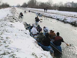 A szokott kikötőhelyen a vastag hó miatt a busz nem tudott megállni, megfordulni is csak a gazdasági épületeknél tudott. Különleges élmény volt a kenukat a mély hóban botladozva magunk után húzni több száz méteren.