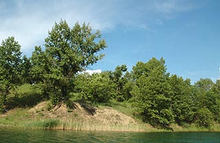 Ez a sziget néhány kisebb-nagyobb, meredek dombból áll, s minthogy lakatlan, nincs karbantartva, és csak kissé dzsungeles körülmények között lehet felmászni a tetejére, ahonnan viszont az egész tó belátható, sőt, még a tórendszer többi részére is rálátni. A túloldalon lemászva kiderült, hogy a sziget mégsem annyira lakatlan, valaki legalábbis táborozhatott rajta, mert maga mögött hagyott egy kis sátor-szerűséget.