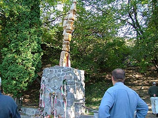 Utunkat folytatva a Gyilkos-tó felé, útközben megálltunk Madéfalván a Székely vértanúk emlékművénél. Az emlékműre kötött rengeteg nemzeti színű szalag ugyancsak arról árulkodik, hogy gyakran járnak erre magyar látogatók.