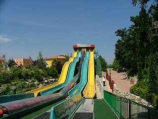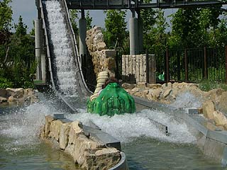 Alulról is impozáns látványt nyújt az óriás csúszda (hát még felülről). A csúszdán egy gumi- csónakkal lehet lejönni, amely vízen csúszik, de egyáltalán nem lesz az ember vizes. A csónakba maximum két felnőtt vagy egy felnőtt és két gyermek fér el. A hét év alatti gyermekeket nem engedik egyedül lecsúszni. Ha valaki lecsúszott, akkor a csónakot egy szállítószalagra kell felhelyezni (erre folyamatosan figyelmeztet egy hang, de magyarul sajnos nem).