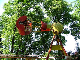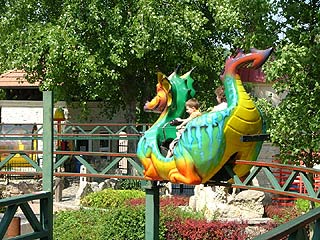 A fejünk felett sárkányok kanyarogtak. Ez a játék két személyes, egy kötött pályán halad kb. 5m magasságban és lábbal kell hajtani.