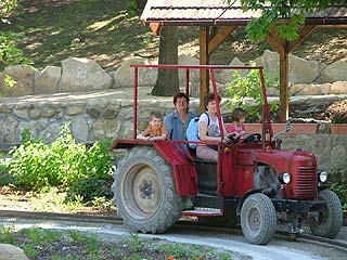 Az idei év újdonsága a traktor pálya. Régi kiszuperált traktorokat alakítottak át és egy kötött sínpályán lehet velük körbe menni, a vezető gázpedállal tudja fokozni a tempót, így már elérik a kb. 3 km/h sebességet. A gyerekek nagyon élvezik, hogy végre ők vezethetnek és a szülők az utasok, emellett hasznot is hajtanak, hiszen minden traktor szállít néhány műanyag almát, vagy zöldséget.