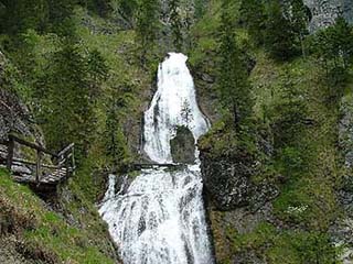 Gyönyörű tájak között, az Enns folyó kanyargó völgyében elhaladó kanyargós úton végre megérkeztünk a vízeséshez.