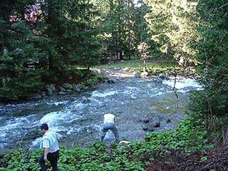 A hegyi folyó látványa egyeseket komoly elhatározásra juttatott. A mai napi út fáradalmai után holnap reggel megfürödnek a friss hegyi folyóban.