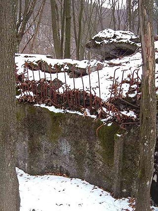 Hét db felrobbantott bunker, harckocsi akadályok, futóárkok, lövészpontok.