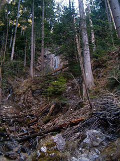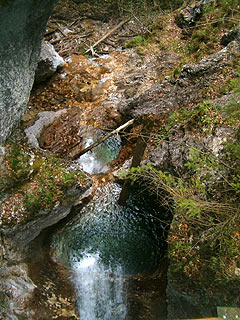 Ezután rátértünk a Kiszel folyó felé vezető útra. Ezt a szakaszt jóval kevesebben járják, mint a Hernádot, pedig ha lehet, még szebb, és kevésbé ijesztő. A terület a hetvenes években leégett és azóta le van zárva, viszont az Óriás Vízesést felülről meg lehet nézni. Az oda vezető kis patak volt a legszebb rész, amit a Szlovák Paradicsomban eddig bejártam.