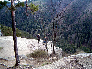 Ehhez képest fél kilencre már indulásra készen is álltunk, ezután azt hiszem, háromnegyed kilenc körül közölték útitársaink (egy baráti pár), hogy így hideg lesz, ugorjunk még haza egy-két pulcsiért. Végül is majdnem dél lett, mire a csingói parkolóból elindultunk „rövid” kis túránkra, ami így inkább hasonlított egy végeláthatatlan erőltetett menetre, mint egy nyugis kirándulásra, de még így is nagyon élveztük. Egy rövid, mindössze félórás megbeszélés (hová is menjünk?) után már tényleg elindultunk a sárga jelzésen a Tamásfalvi-kilátóhoz, ami egy igen magas sziklafal, (667m), gyönyörű kilátással a Magas-Tátrára, és mivel korlát nincs, így vérmérsékletünknek megfelelő távolságra közelíthetjük meg a szakadékot.