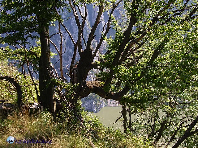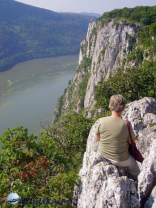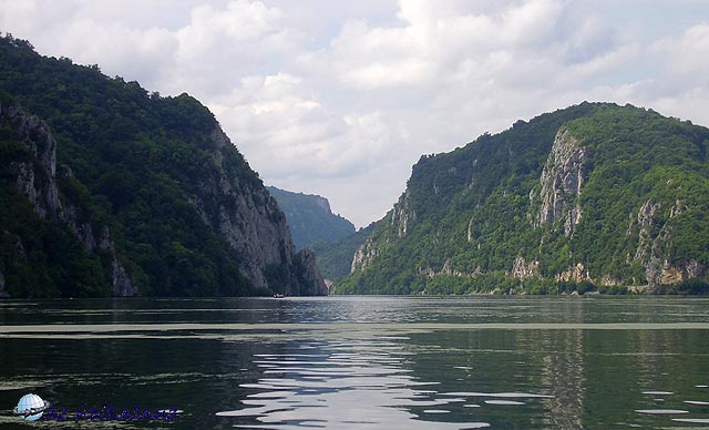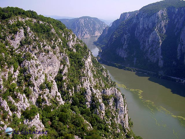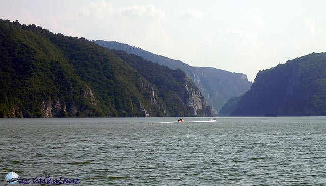 Ismerkedésünk a várossal rövid, de tartalmas volt, Még egy esküvőt is végigélvezhettünk az ortodox templomban. Utunkat most már valóban a Temes völgyében folytattuk, Lugos és Karánsebes érintésével. Karánsebes után elértük a Kárpátokat, vége szakadt az alföldi síkvidéknek. Az út az úgynevezett ?Keleti Kapun? vezet át. A Porta Orienatalis Nem túl magas hágó a Szörényi érchegységben. A vonat az út mellett fut, a vízválasztónál alagúttal. Az út – 6-os országos főút – hihetetlenül rossz. Építik ugyan, de 2008 nyarán még távol volt a befejezéstől. Hamarosan ereszkedni kezdtünk a Mehiádiai medencébe. Jobbról-balról meredek sziklás hegyek között kanyarog az út. Egy villanásra feltűnt a Herkulesfürdői vasútállomás. Most már a Cserna völgyében haladtunk. Hamarosan befutottunk Orsovára, illetve átvágtunk rajta, mert Dunaorbágyra (Eselniţára) igyekeztünk. Ez a település a Kis-Kazán-szoros déli bejáratával szemben épült. A Vaskapunál visszaduzzasztott víz itt már hatalmas tóvá szélesedett, folyása lelassult, vize felmelegedett. A Duna mellett, a meredeken lejtő hegyoldalakban épp csak az útnak van hely. Mellette a hegybe faragva, vagy a víz fölé kikönyökölve üdülőházak sora, kis szállodák épületei szoronganak. Ezek egyikében vertünk tanyát néhány napra. Legyünk pontosak: az épületegyüttes eredetileg egy szállodának épült több tulajdonossal. A tulajdonosok néhány éve összevesztek, ezért aztán kerítést húztak a függőfolyosókra. Azóta is függetlenül működnek, külön recepcióval és étteremmel. A szálló fekvése gyönyörű. Örülünk, hogy itt lehetünk, néhány év múlva, ha beindul itt a vendégforgalom, megfizethetetlen lenne számunkra. A környék mindenütt építkezési terület. Korábban, a Causecescu érában ez határövezetnek számított, nem engedélyezték az üdülők építését. Aztán a háború miatt katonai övezet volt – ez persze nem akadályozta meg a csempészést, amely a környék lakosságának kellemes kereset-kiegészítést jelentett. A béke beköszönte után, amikor az ideológiai akadályok is megszűntek, őrült iramban kezdődött meg az üdülőövezet építése. A szálló(k) két-háromágyas, fürdőszobás szobái kicsit ugyan szűkek, de a kilátás az ablakokból és a szobák előtt húzódó függőfolyosókról káprázatos.