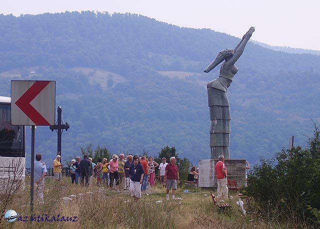 Újabb félóra az út vissza – a meredek lejtő lefelé sem volt jobb. A vendéglőben finom, hideg, frissen csapolt sört lehetett inni. Ez helyreállította zilált sorainkat. Tovább felfelé, a folyás irányába! A busz lekanyargott a nyeregből. Ha nagyon kitekertük a nyakunkat, az egyik völgy mélyén egy pillanatra látni lehetett egy hatalmas barlangnyílást – ennek a másik végében jártunk tegnap a csónakkal! Az út újra a vízpartot követte. Útépítés lassította a haladást – pontosabban út néha nem volt, de építőket nem láttunk, csak a szanaszét hagyott ócska munkagépeket. Elhagyott bányásztelepüléseken haladtunk át. Öt-hat teljesen romos, lakatlan ház között egyetlen lakott épület, de ez is ugyanolyan romos. Mint a többi. Hogy élhetnek emberek ilyen lehetetlen körülmények között? Egyáltalán miből élnek? Az utat továbbra is hegyek kísérték. Hatalmas erőkről tanúskodtak a Gospodi Vír oldalában látható kőzetgyűrődések. Közel a galambóci szoroshoz, az út mellett a sziklafalba vájva hatalmas emléktábla hirdeti a XIX. század végén folyó nagy szabályozó munkálatokat, melyeket még Széchenyi kezdett század első felében, és Baross Gábor fejezett be a századvégen. A tábla felavatására három királyt tereltek össze: itt volt a magyar király (és osztrák császár), a szerb és a román király.