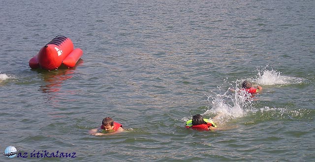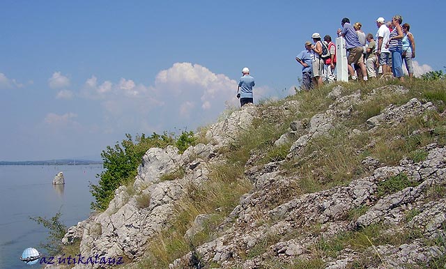 Ugyanis míg Galambóc a szerb oldalon van, a román oldalon emelkedő domb tetején állt Lászlóvára. Ma csak néhány kő emlékeztet rá. Út nélkül igen meredeken szúrós, tüskés bozóton keresztül másztak fel a bátrabbak. A kevésbé bátrak elhanyagolt gyümölcsösben szilvát falatoztak. Lenn a mélyben guggol a vízben Babakáj szikla, hajdan a hajósok réme. Galambócon túl kiszélesedik és elsekélyesedik a víztározó. Visszafordultunk, és újra végigélveztük az egész Aldunai-áttörést. A meleg szinte elviselhetetlen volt, így a szállóba való visszaérkezésünk után hamar akadt jelentkező, aki kipróbálta a ?banánozást? . A többiek úszkáltak, vízisíztek.