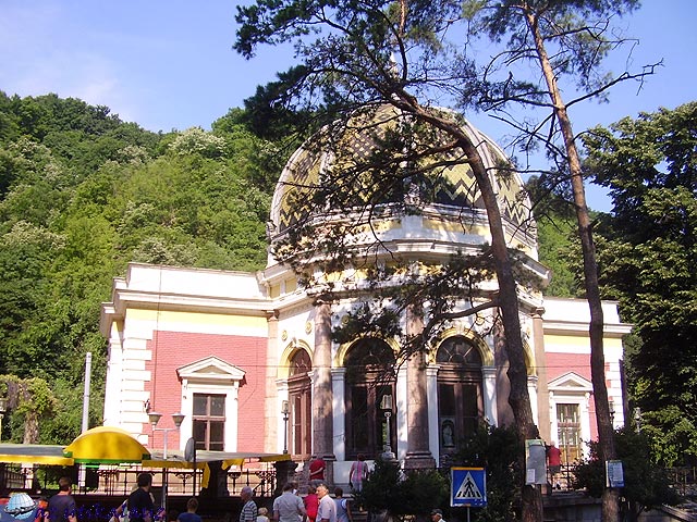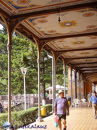 A fürdőhely tulajdonképpen egy utca végig a patak mellett, vagy inkább kettő, mert a pataknak két oldala van. Az autóbusz felvitt bennünket a felső végébe, onnan ereszkedtünk alá. Így mindent láttunk, amit érdemes: láttuk a modern betonszálló aljában a római kori téglafalakat; a szűk lépcsőn megközelíthető ivókutakat, ahonnan műanyagpalackban viszik a vizet; a katolikus templomot, ahol Sissy hallgatta a misét; a Hercules szobrot, amelynek római eredetijét errefelé találták meg; a tatarozás alatt álló (vagy éppen újra lepusztuló) tisztikaszinót; a hatalmas mammutfenyőt, a zenepavilont, fürdőzőket a Csernában és rengeteg szemetet. A busz a modern fürdőnegyed aljában várt, vitt vissza a szállóba a búcsúvacsorára.