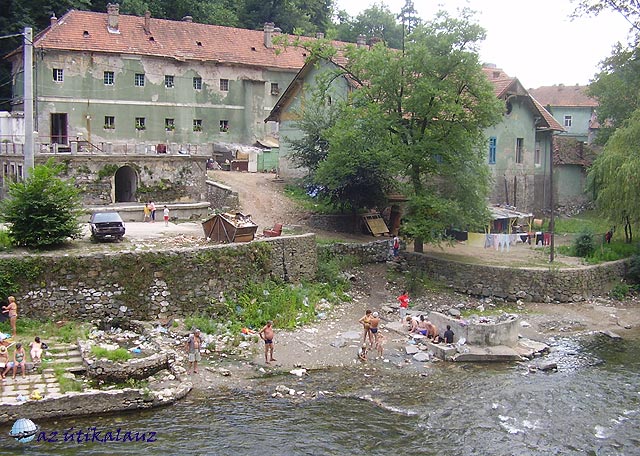 Innen még 8 kilométer a fürdőhely. ?Herkulesfürdői emlék? hangjaira gurultunk be a valaha elegáns, mára már lepusztult, elhanyagolt fürdőhelyre. Fekvése egészen egyedülálló: A Cserna patak szűk völgyében fekszik, jobbra-balra 1000 méteres hófehér sziklák magasodnak.