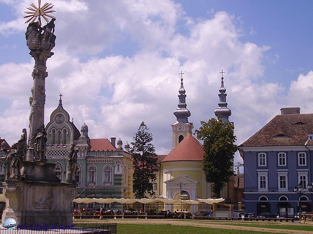 Két központja is van a városnak, mindkettő más jellegű. A tereket övező utcák azonos stílusúak, a barokk stílusból átsétálhatunk a szecesszióba. A Lloyd soron (Piaţa Victoriei) áll az ortodox katedrális, gyönyörű részletgazdagsággal. Előtte áll a forradalom emlékműve. Nem csak a város sokarcú, a lakossága is. Románok, magyarok mellett németek, délszlávok is lakják. A ?legtoleránsabb városnak? nevezik sokan. Nemhiába innen indult a forradalom.