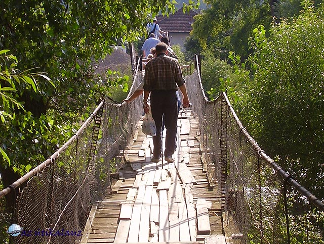 Köröstárkányt a Köves Körös választja el Nyégerfalvától. A két falu között a ?lengőhíd? teremt összeköttetést. Megnéztük, átmentünk rajta. Láttuk a helybélieket, akik biciklivel, kismotorral mentek át rajta. Este állítólag a tehenek is itt jönnek át a legelőről. A közelében már építik az új hidat, legalábbis nagy földmunkák vannak. De hogy miért nem képesek jobban karban tartani a lengőhidat, az érthetetlen. Mi a lélegzetünket is visszatartottuk, amíg át nem értünk rajta. A híd közepétől a háló is hiányzik, a kábelt nem lehet megfogni, mert kiállnak belőle a drótvégek. A deszkák mozognak a járófelületen?