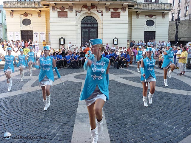 A város az ünnepi hétvégén nagyon élt. Rengeteg turista, de nem csak külföldi nyüzsgött a belvárosban. A város láthatóan felkészült a fogadásukra, számtalan helyen lehetett enni-inni, nemcsak drágán. Az előkelőbb, drágább helyek a Király utcában, Széchenyi téren, az olcsóbb, “vásári” kajáldák a Sétatéren (Szt. István téren). Itt nagyon finom, ennivalókat találtunk: Pleskavicát, csevabcsicsát, rozmaringos sült krumplit, brassói aprópecsenyét, forró sült krumplit sajtos-húsos töltelékkel. A soron végig menni is érdemes volt, nehéz volt dönteni. Ezer forint alatt lehetett jóllakni, egy sört is beleértve. A Király utca persze előkelőbb. De itt is lehetett találni magyar pénztárcának megfizethető helyeket. Kihagyhatatlan a Boltív közbe települt Korhely, már csak az étlapja miatt is. Hol lehetne még “Rudas Matyit”, “Sehere Sezádét” vagy “Plázacicát” enni? Az ötletes ételnevek mellett a szakács is jó… Valahol az utca végén egy belső kertben bűbájos teázóra bukkantunk (vízipipa is van), a színház mellett hatalmas adag fagyit adnak a lányok. Az elárusítók, kiszolgálók mindenütt kedvesek, segítőkészek.