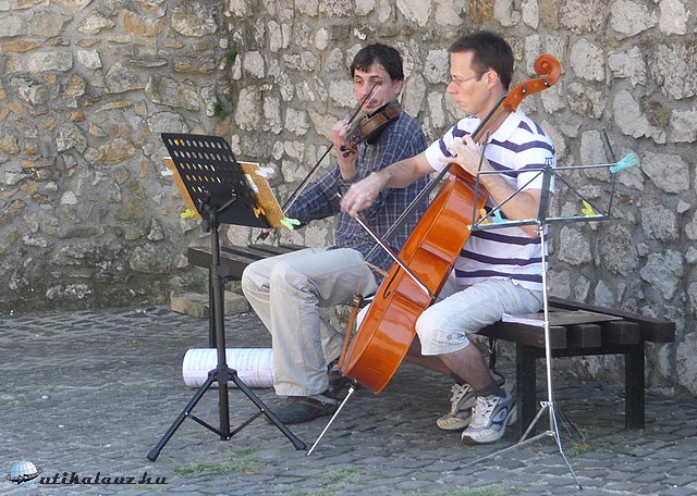 A Barbakán mellett az árnyékban egy hegedű és egy cselló szólt egész délután. Szebbnél szebb barokk darabokat játszottak a fiúk. A színház mellett lengyel fúvószenekar zendített rá, előttük szöszi lányok pörgették a pálcát. A hallgató- és nézőközönség persze elállta a szűk utcát. A biciklisek a drótszamarat a fejük fölé emelve tülekedtek át a tömegen. (Hogy kik voltak a muzsikusok és a majorettek, soha nem tudjuk meg, mert a programban csak annyi szerepelt, hogy szombat délutánonként térzene lehetséges, illetve valahol rábukkantam, hogy a Fekete Gyémántok fúvószenekar játszik, egy Baranya megyei fúvós együttes – a zenészek egyértelműen lengyelek voltak, ráadásul nem is szombat, hanem vasárnap volt…)