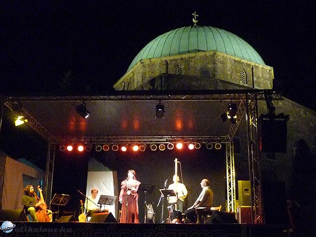 Vasárnap este a Széchenyi téren Lovász Irén lépett fel. Ez a mindenki előtt titkolt Mediterrán Hangulatok Fesztiválja záró rendezvénye volt. Reneszánsz muzsikával, reneszánsz zenei örökséget őrző népdalokkal csodálatos hangulatot varázsolt Lovász Irén zenekarával a nyári estébe. A dzsámi előtt különös hangulata volt a török szerelmes éneknek.