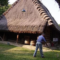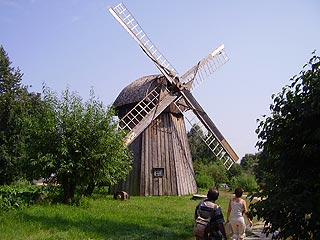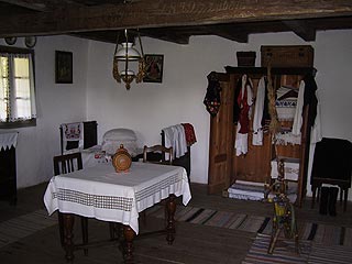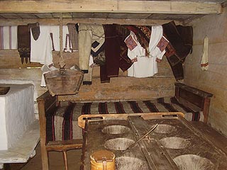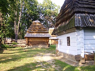 tyúkok kapirgálnak, birkák legelik a füvet, a kertekben krumpli, bab, répa nő. A házakat „őrző” nénik kötögetnek, hímeznek, szőtteseket, képeslapot faragásokat árulnak. Szívesen bemutatják a házakat, elmagyarázzák az egyes tárgyak, eszközök rendeltetését. Bennünket egy nagyon szegény ház asztala fogott meg: az asztal lapja lenyitható, ekkor előtűnik hat mélyedés, melyet tányérként használtak. A mélyedések alján lyuk van, melyet dugó zár el. Így lehetett megoldani a mosogatást. A néni lelkesen nyitotta-zárta az asztalt a látogatók előtt. Jó kivitelű ukrán-angol nyelvű füzetke kapható sok képpel a skanzenről 10 hrivnyáért.