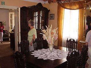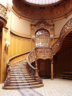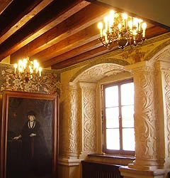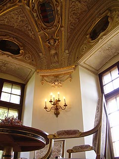 Nagyon gazdagon berendezett termek, ragyogó faragott ablakkeretek, stukkók