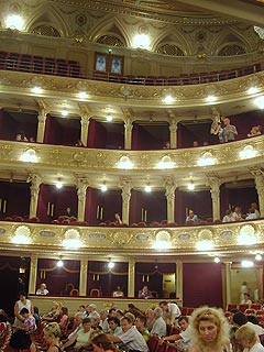 Másnap gyalog sétálunk be az óvárosba. Negyedórás séta szép házakkal szegélyezett úton. Itt bukkantunk rá az útikönyv által nem jegyzett régi Úri kaszinó épületére (vulica Listopadoho Tschynu), amely kívülről is impozáns, de belül csodálatos faburkolattal, reprezentatív termekkel, lépcsővel rendelkezik (belépő 5 hrivnya). A közelében az egyik házon kétnyelvű emléktábla: itt szolgált Bolyai János, mint katonatiszt. Hamarosan a Béke térre értünk, egy árnyas fákkal szegélyezett hosszú sétatérre. Az egyik végét az Opera épülete zárja le, közepén szép, modern Sevcsenko szobor áll. Az Opera kívül-belül hasonlít a pesti Operához. Kicsit kisebb, de nagyon impozáns, hatalmas lépcsőházzal, dúsan aranyozott társalgókkal, és persze remek páholysorokkal. Sok várakozással, de végül sikerült belülről is megcsodálni.
