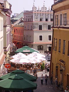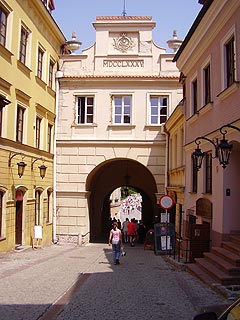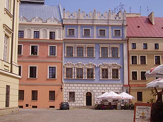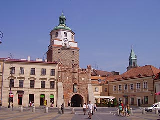 Másnapi úti célunk Lublin. A belvároshoz közel találunk jó parkolóhelyet, igaz fizetőst. Nehéz volt megtalálni, hol lehet parkolójegyet kapni (óránként 2,5 zl.). Átsétáltunk a Krakkói kapun. Megtaláltuk a feljáratot – a kaputól jobbra, egy étterem mögött eldugva(2,5 zl). A torony belseje már nem az eredeti, de szépen kialakított terében Helytörténeti Múzeum működik. A tetején négy irányban lehet az ablakokon kitekinteni. A kapun áthaladva szép régi házak között érünk ki a Rynekre. A legszebb házakat már rendbe hozták, de még bőven volna mit csinálni. Kávézók, éttermek húzódnak meg színes ernyők alatt, de itt nem szabad kávézni, mert porból gyártják a kapucsínót! A város görbe utcácskáin bóklásztunk, felfedeztük a dominikánus templom melletti „kapumúzeumot”.