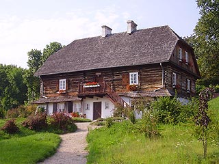 , ahol a falusi turizmus keretében foglaltunk szállást. A falutól külön, magányos házban laktunk. Andzej és Renáta, vendéglátóink csak lengyelül értettek, egy fiatal nőrokon tudott valamelyest angolul, de kézzel-lábbal megértettük egymást. Kényelmes szobáink, külön-külön fürdőszobáink voltak. Félpanziós ellátást kaptunk. Renáta kiválóan főzött, nem zsírosan, finom fűszerezéssel. Saját zöldségeket, csirkehúst tálaltak fel. Salátái különösen ízletesek voltak. A kertben lévő kényelmes nagy faasztalnál későig lehetett beszélgetni, mély csönd volt, a kert végében vezető úton néha elhaladt egy lovas szekér. A szomszéd réten tehén legelt. Madárdalra ébredtünk minden reggel. A vidék dimbes-dombos, kis patakokkal. Néhány percre újonnan létesített strand, mellette sífelvonó. Négy éjszakát töltöttünk itt, bejárva a környéket.