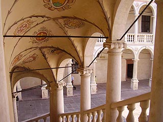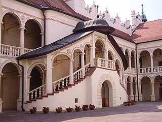 Rengeteg lépcsőn másztunk felfelé, minden létező helyen gótikus és reneszánsz szobrok, amelyek a dominikánus templom barokkosításakor fölöslegessé váltak. Közben halk zene szólt. A lépcsősor tetején körerkélyre léptünk ki, ahonnan remek kilátás nyílt az óvárosra. Visszatérve a földre, megkerestük a vár bejáratát. Maga a vár csúf (börtönnek használták), az udvart tatarozzák, de a múzeum és a kápolna nyitva. (belépő 2,5+5zl) A kápolnába egyszerre csak kevesen léphetnek be, a jegyet időpontra állítják ki… A pénztáros néni látva elkeseredésünket, elintézte, hogy tíz perc múlva fogadják a „magyar csoportot”. A Szentháromság-kápolna megérte a fáradozást: A gótikus kápolna minden felületét freskóval díszítették, még 1418-ban. Sajnos fényképezni nem szabad. A múzeumban bútor- és fegyverkiállítás, porcelánok és lengyel festők művei láthatók. A néprajzi részleget zárva találtuk.