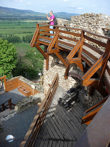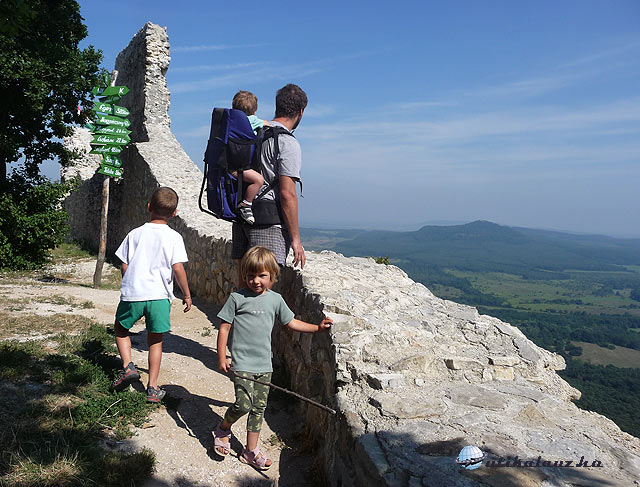 Tapolca jó kiindulóhely gyalogtúrákhoz a Szent György-hegyre, a Csobáncra. Kiváló autóút vezet le Szigliget felé, a Szent György-hegy lábánál, Hegymagost érintve. Számos pince kínál bort, érdemes valamelyikbe betérni egy kis borkóstolásra. A kilátás mindenütt csodás. Hamarosan Szigligetre érünk. Több választásunk is van: séta a faluban, várlátogatás, a hegyek körbeautózása. Persze mindezt egymásután is megtehetjük. A falu szűk utcácskáiban elég nehéz parkírozó helyet találni, különösen nyáron. A falukép védett, nem lehet akármit építeni. A nádtetős házak között sétálva látjuk, hogy a többségük már nyaraló, nem lakik benne állandó lakos. A várba csak gyalog tudunk felkapaszkodni. Életem első várlátogatása Szigligeten még külön kaland volt: a romos falakat erősen benőtte az erdő. Azóta a bozótot kiirtották, ásatások folytak, sok részletet helyreállítottak. Persze belépődíj van. Felfelé haladva jól érzékeljük a hajdani felvonóhidat. Sütőkemence fogad, az alsóvárban színpad. Ha kedvünk van, íjászkodhatunk pár forintért, segít benne egy korabeli ruhába öltözött vitéz. A felső várba felkapaszkodva gyönyörködhetünk egy szép kútban, és a konyha-rekonstrukcióban. Ez különösen kedves számunkra, mert a lányunk tervezte hosszas kutatómunka után. A vár legmagasabb fokáról szétnézve elénk terül a Balaton, a Szigligeti-öböl, körbe a szigligeti dombok. Legaranyosabb – és legkisebb – a Királyné szoknyája dombocska. Leereszkedve a várhegyről, az alsóbb régiókban autózva keressük meg az Avasi-Réhelyi templomromot. Öreg fákkal körülvett tisztáson áll az Árpád-kori rom. Csak a tornya áll, a templomhajó fala csak derékig ér. Körben régi sírok. A tisztás szélén diszkréten mellékhelyiség húzódik meg. Ellenkező oldalon ápolt kis kert, faragott kapuval – mögötte parkoló, vendéglő.