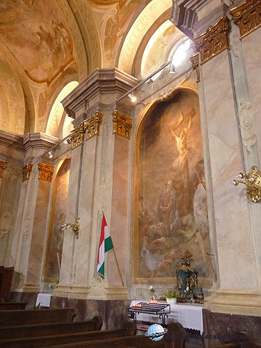 A kastély és kapcsolt részeinek meglátogatása után elmaradhatatlan a séta a főutcán, ma már szépen felújított sétálóutca. Minden alkalommal betérünk Pethő-házba, Goldmark Károly szülőházába. Szeretjük a szép barokk udvari árkádsort. Tavaly elkészült a Főtér rekonstrukciója is, az autóforgalmat száműzték. Méltó befejezése a sétának a plébániatemplom. Keszthely legrégibb épülete, hiszen az 1390-as években épült. Szép gótikus templom, a XIX. században neogót tornyot építettek a homlokzat elé, de beleépítették a gótikus rózsaablakot. Valaha be lehetett menni, de mióta 1974-ben megtalálták a szentélyben az ország legnagyobb gótikus freskóját, csak rácson keresztül csodálhatjuk meg a templom belsejét. A fényviszonyok miatt a freskót csak elképzelni tudjuk. Kívül a templom mellett a romok egy XII. századi körtemplom, a Szent Lőrinc-kápolna maradványai, illetve a templom mellé épült kolostoré. A török időkben fallal vették körül a templomot, menedéket nyújtva a lakosságnak a vérzivataros időkben. Ennek is csak csekély emléke maradt az úgynevezett Várkertben. A templom szép tér, érdekes szökőkút, és Festetics György szobra díszíti. Farkas Ferenc és Herman Lipót alkotása.