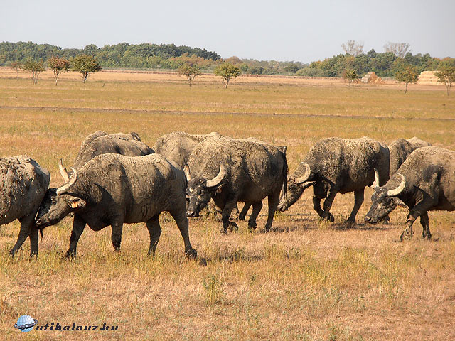 A marhák után következtek a bivalyok. Ázottak, csapzottak voltak, biztos dagonyáztak korábban. Hátul egy nagy fa tövében kölyökbivaly feküdt, anyja bizonyára odavezette a hőség miatt. A bivalyt felénk már csak a húsáért és látványosságnak tartják, pedig példát véve az olaszokról, finom sajtot gyárthatnánk a tejükből. Csak persze legyen aki feji őket.